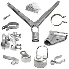Chainlink Fence and Accessories available. Extension Aram, Brace Cup, Pivot Bolts, Pipe Cap, Winding Bracket, Doom Cap, Loop Nut, Eye Bolts, all available in PVC and HDG